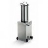 Embutidora hidráulica vertical fabricada completamente de acero inox.Totalmente desmontable para la limpieza sin el empleo de utensilios.Tapa y tapón totalmente de acero inox.Guarniciones de silicona que actúan en el interior del cilindro para una mayor hermetismo y duración de la misma guarnición.Protección hermética del cilindro oleo-dinámico.Vástago del pistón en acero inox.Cilindro de acero inox, lustrado, con bordes redondeados sin lado obligatorio.Potente y silencioso motor ventilado a 2.800 giros de acción inmediata.Retorno del pistón automático con apagado del motor.Mandos a 24 V.Regulador del flujo del aceite de alta precisión.Ruedas de goma opcionales. Tanque de aceite con indicador de nivel.Dimensiones: 490 x 370 x 1200h mmPotencia: 520 wVoltaje: 400/50/3Capacidad cilindro: 15 lts.Longitud cilindro: 495 mmDiámetro cilindro: 200 mmTrayecto pistón: 430 mm Diámetro embudos en dotación: 10-18-25 mm