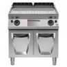 Fry top gas plancha ondulada cromada sobre base con puerta